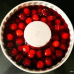 Subsequently, take a jelly mould or cake Bundt pan and rinse it with water. Place all the cherries evenly around. Pour the jelly. Refrigerate until set.